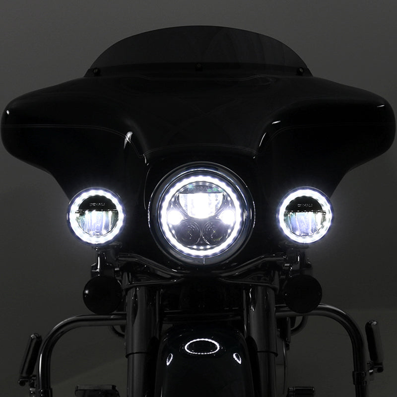 The matching halo day time running light increases visibility to other motorists and gives your bike a sick custom look.