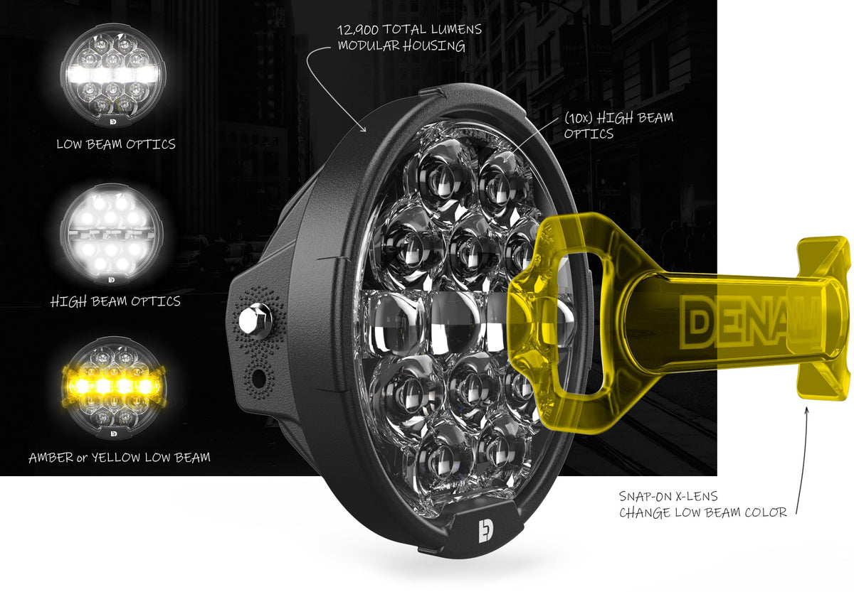 Modular X-Lens System - Change low beam color on-the-fly to amber or yellow