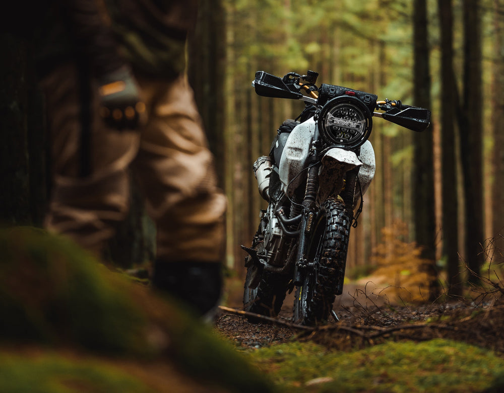 Say goodbye to outdated sealed beam headlight modules that drop into your grandfather's headlight bucket. Our Destroyer headlight was created from our signature off-road DNA and features a universal mounting platform with reinforced M8 mounting points purpose built to enable endless mounting possibilities in scramblers, enduros and custom-built motorcycles.