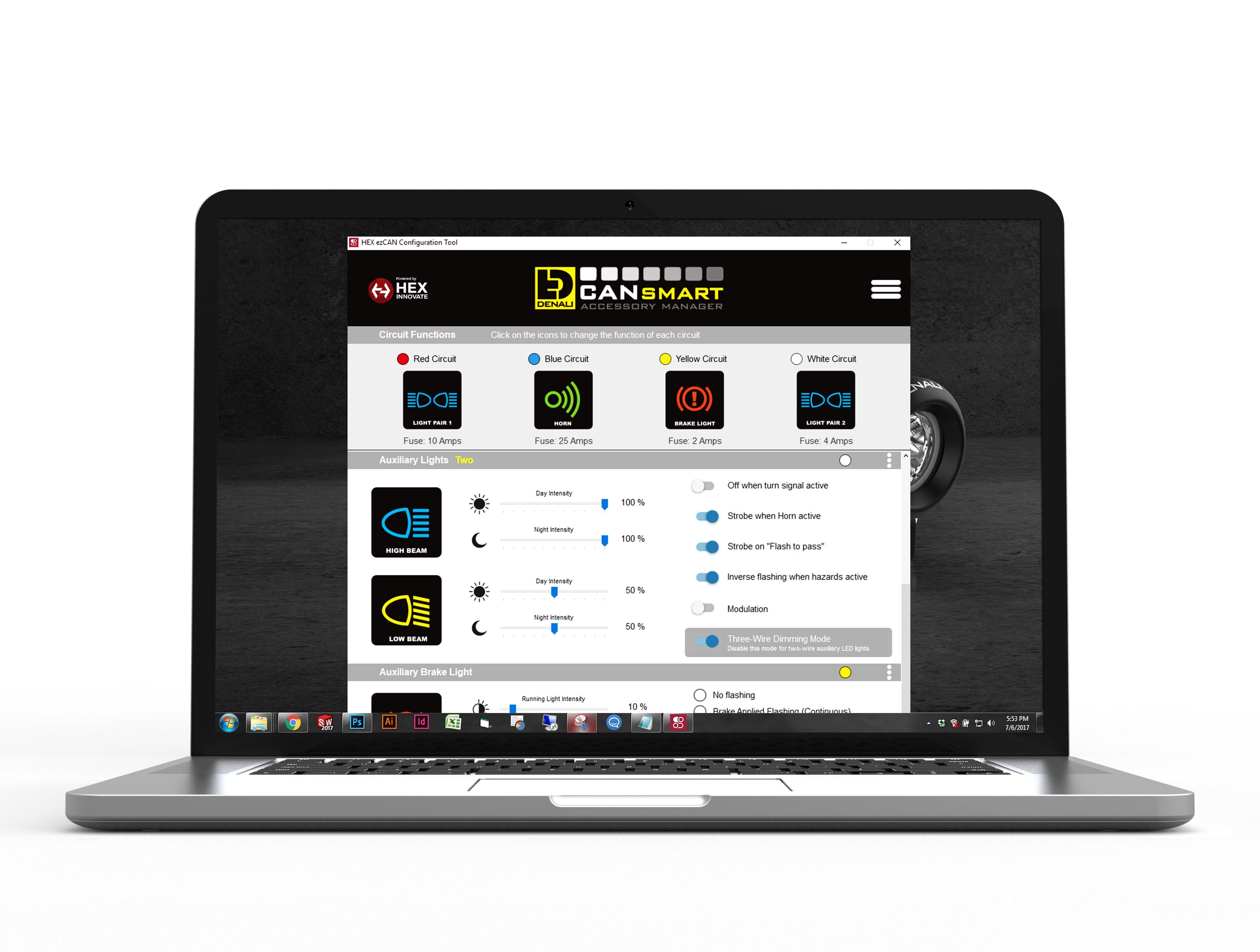 Control OEM accessories, 3rd party accessories or use the included wiring harnesses for plug & play connection to DENALI driving lights, DRLs, SoundBomb Horns and B6 Brake Lights.