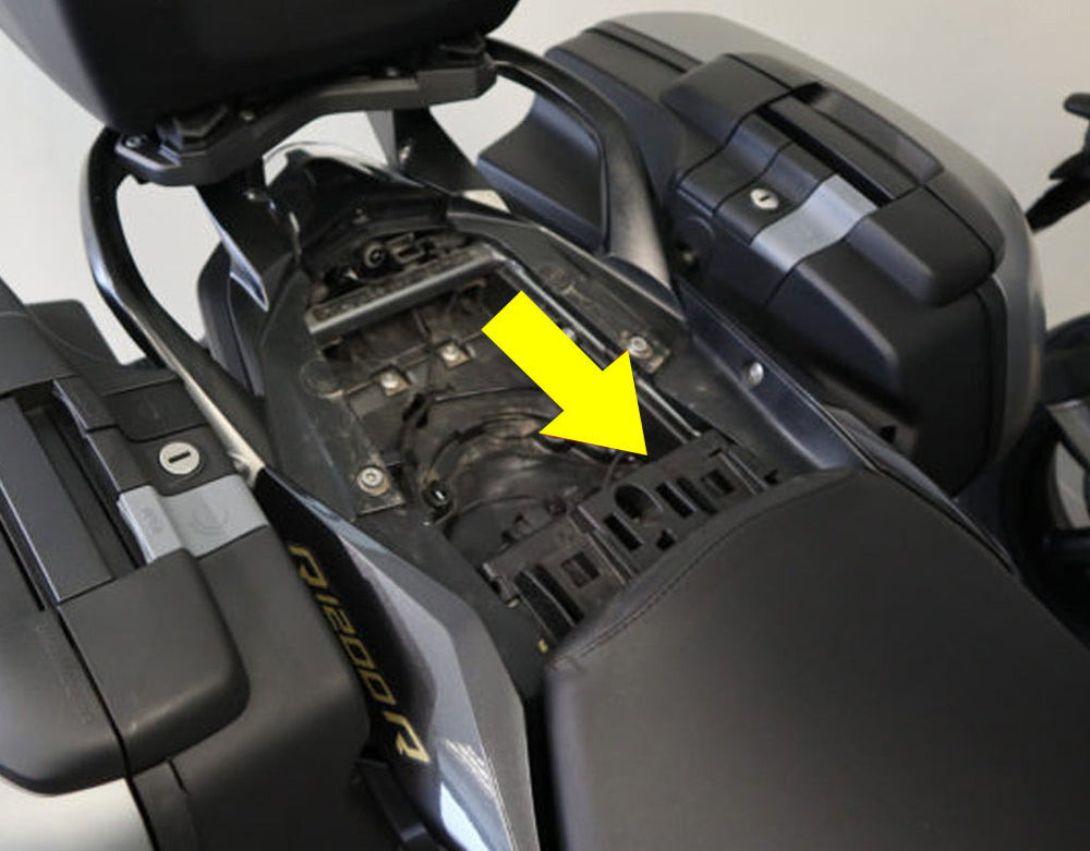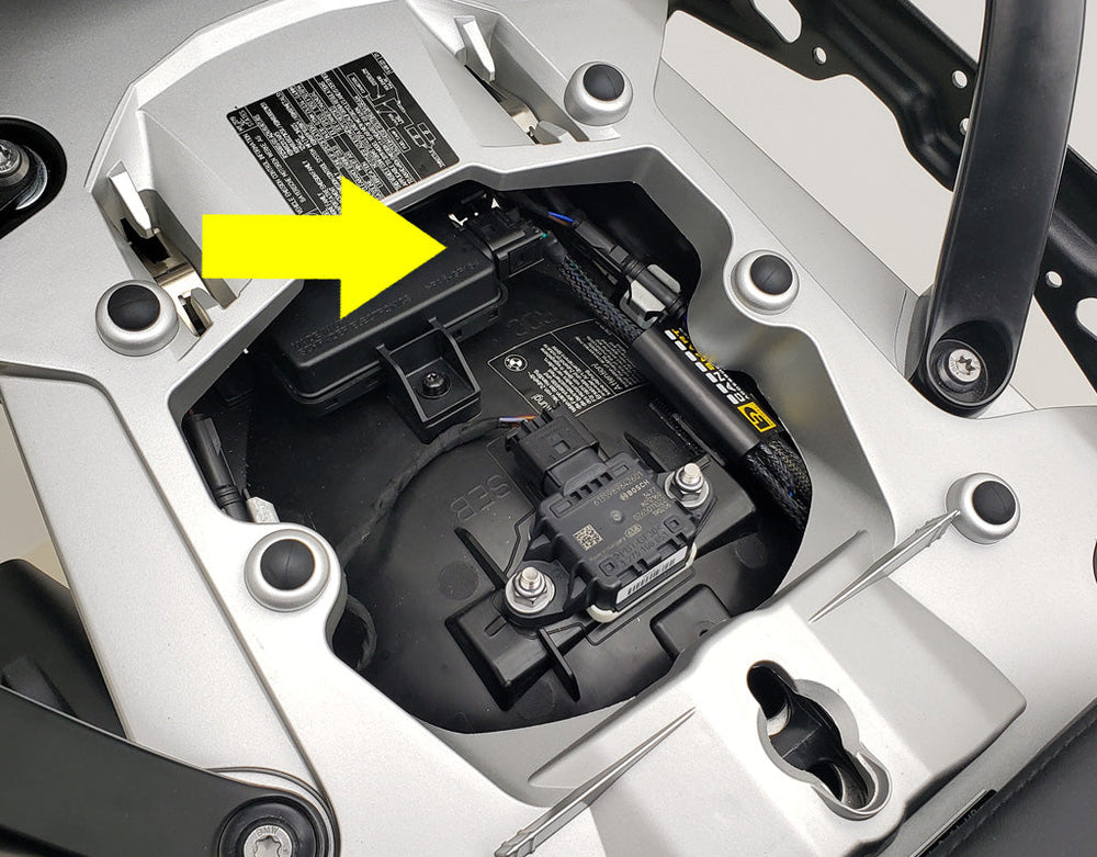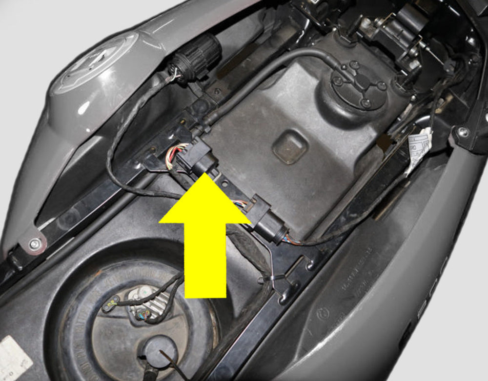 Plug the CANsmart unit into your bikes CANbus electrical system via a connector located under your seat. For R1200LC and R1250 models you connect to the Tire Pressure Monitor System (RDC). For all other BMW models you connect to the alarm system (DWA). Scroll down to see exactly which plug to connect to on your bike.