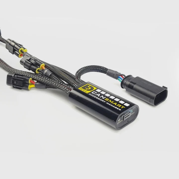 Designed for 2.0 lights, the CANsmart™ Controller communicates directly with your vehicle's CANbus electrical system to enable effortless installation and integrated dimming of 2 sets of DENALI 2.0 lights, a SoundBomb Horn, and our B6 brake light.
