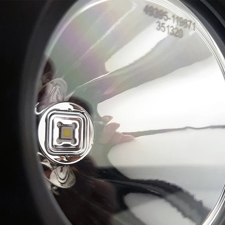 Previously white, the 2.0 optic holders are plated in bright chrome. This subtle attention to detail maximizes reflectivity and refines the appearance of the lamps to match the original chrome reflectors of your vehicle's headlights.