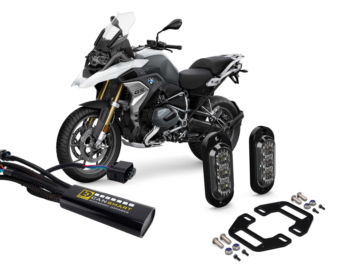 Maximize visibility on the road with the DENALI BMW R1250GS Visibility Bundle. Featuring CANsmart™ technology, T3 Modular Switchback Signal Pods, and a license plate mount, this bundle offers a 180-degree viewing angle and a low-profile design for increased safety on your BMW R1250GS/GSA.