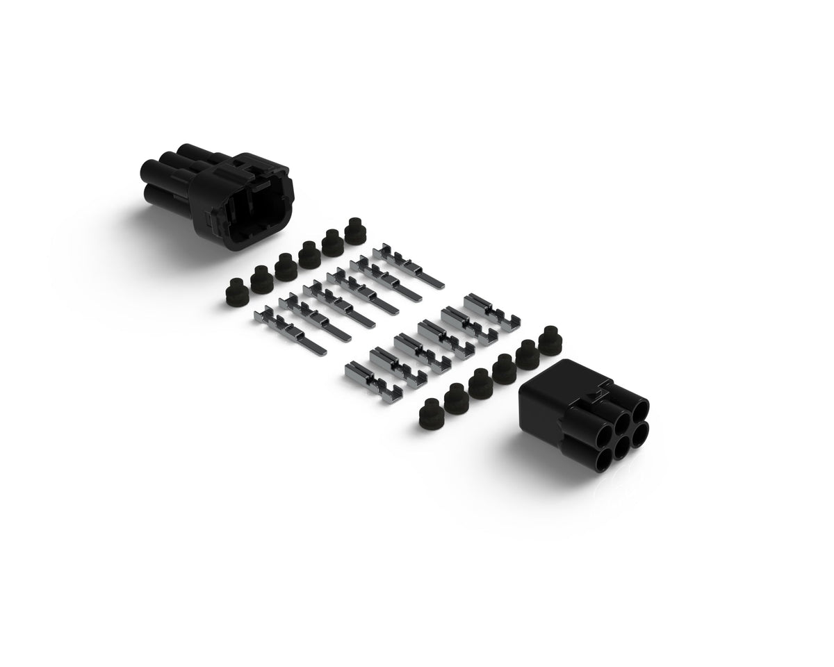 These premium MT Series Waterproof Connectors are used in the DENALI 2.0 lights and harnesses. The kit includes both the male and female connector, crimp on terminals, as well as waterproofing wire seals. Using an affordable crimping tool (DNL.CTR.CRIMP), these connectors can be crimped onto wires in seconds to modify, customize, or replace electrical connections.